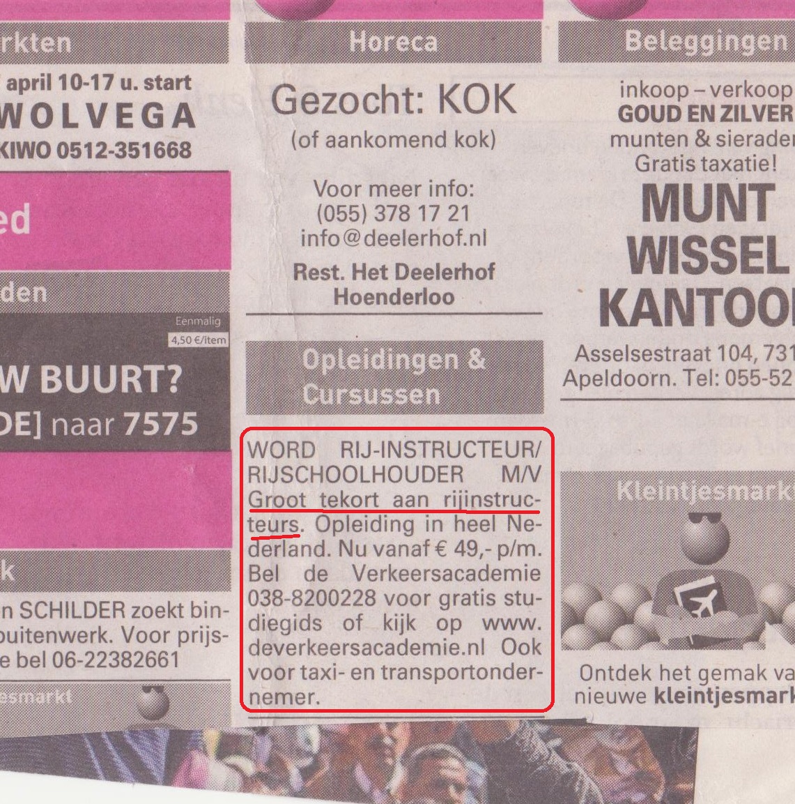 Het inmiddels enig overgebleven VVB-lid De VerkeersAcademie van Gijs Kantelberg adverteert nog immer met een "enorm tekort" aan rij-instructeurs. Niet op haar eigen website, maar wel hier (jpg) en hier en hier.